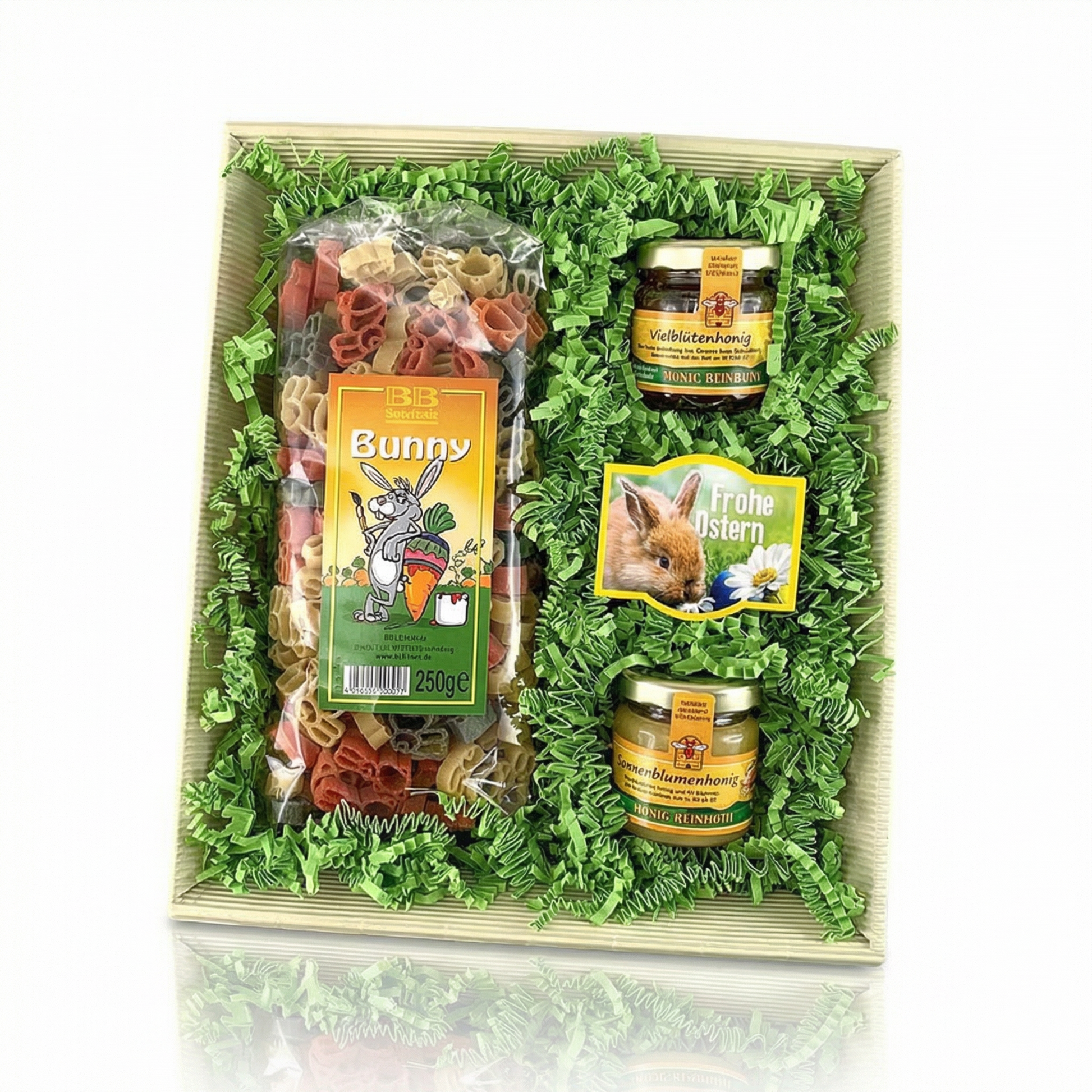 Der Honig lässt sich sofort genießen – Vielblüten für die Einen, Sonnenblume für die Anderen. Die Pasta Bunny bringt farbenfrohe Hasen auf den Teller, natürlich gefärbt, aus reinem Hartweizengrieß. Und das Mini-Pflanzset? Das braucht etwas Geduld – aber wer zusieht, wie aus einer kleinen Erdtablette eine bunte Blumenwiese wird, weiß: Die besten Dinge wachsen langsam.